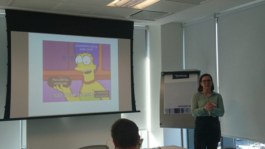 Next was Alina Apine‘s talk on “Queer history: whose story is it?”. One of those talks where you go “I never knew [famous historical figure] was gay!”. I loved the story of Billie Holiday (bisexual, appaz) and Tallulah Bankhead, who had an affair. The latter denied it in her autobiography, saying only that Holiday used to come round occasionally “for spaghetti” which is my new favourite euphemism.