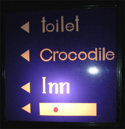 Below is a photo I took in a bar in Cambodia. I wanted to go to the toilet, and knowing there were crocodiles in the same direction helped me find it.